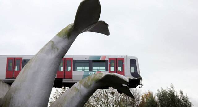 حوادث  جام جم آنلاین و نه نقل از خبرگزاری ایسنا، در این حادثه یک قطار خطوط متروی حومه شهر روتردام، از محدوده توقف ممنوع ایستگاه «دی آکر» در منطقه «اسپیکنیسه» از ریل خارج شد اما دم مجسمه نهنگ نگذاشت تا واگن ها به زمین بیافتند و اولین واگن که واگن راننده بود، درست روی دم نهنگ از حرکت ایستاد.