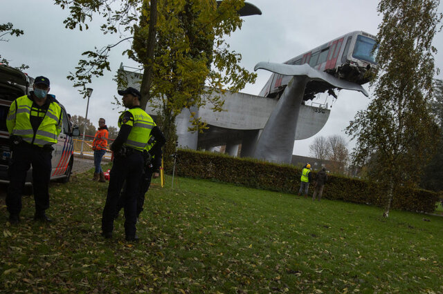 به گفته مقام های متروی روتردام این حادثه روز گذشته (دوشنبه) رخ داده است. اگر مجسمه مانع توقف قطار نمی شد، واگنها از ارتفاع ۱۰ متری به پایین سقوط میکردند.