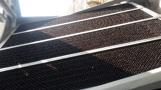 هم چنین جنس PVC به دلیل خشک شدن روغن DOP موجود در آن در اثر مرور زمان ترد و شکننده شده و شروع به خرد شدن می کند. تکه های خرد شده وارد سیستم آب در گردش شده و باعث ایجاد گرفتگی و رسوب در قسمت های دیگر می شوند. اگر ورق ها در ابتدا از مواد بازیافتی تولید شده باشند این پدیده سریعتر اتفاق می افتد.