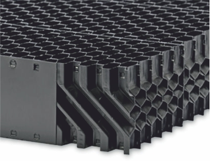 قطره گیر لانه زنبوری برج خنک کننده در دو جنس پلی پروپیلن PP یا پلی وینیل کلراید PVC تولید می شود. هر کدام از این دو جنس دارای مزایا و معایبی می باشند. ورق های تولید شده از جنس PVC توسط روش وکیوم فرمینگ شکل داده شده و با چسب به همدیگر چسبانده می شوند. اتصال چسبی نسبت به حلال های موجود در آب ضعیف بوده و بعد از مدتی از همدیگر جدا می شوند.
