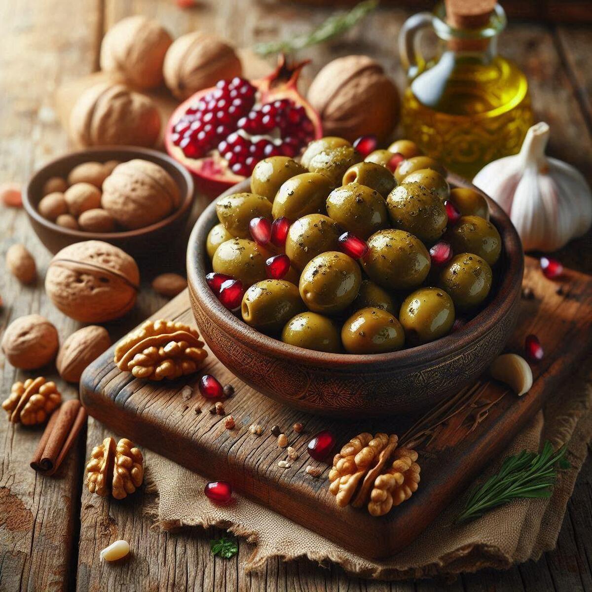 زیتون پایه اصلی این ترکیب است. زیتونها حاوی چربیهایی از نوع غیراشباع هستند که برای سلامت قلب، کاهش کلسترول بد (LDL) و افزایش کلسترول خوب (HDL) بسیار مفیدند. این چربیها به سوختوساز بدن کمک میکنند و برخلاف چربیهای اشباع، کمتر در بدن ذخیره میشوند. علاوه بر چربی مفید، زیتون سرشار از ویتامین E و آنتیاکسیدان است.