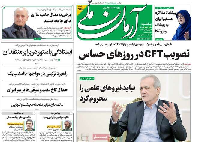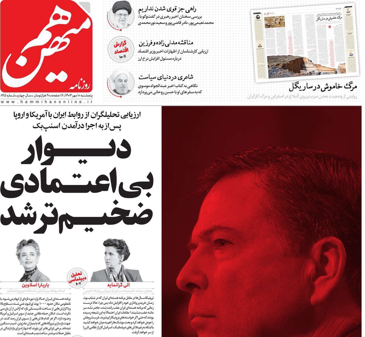 صفحات نخست روزنامه ها‌ی پنجشنبه ۱۰مهرماه