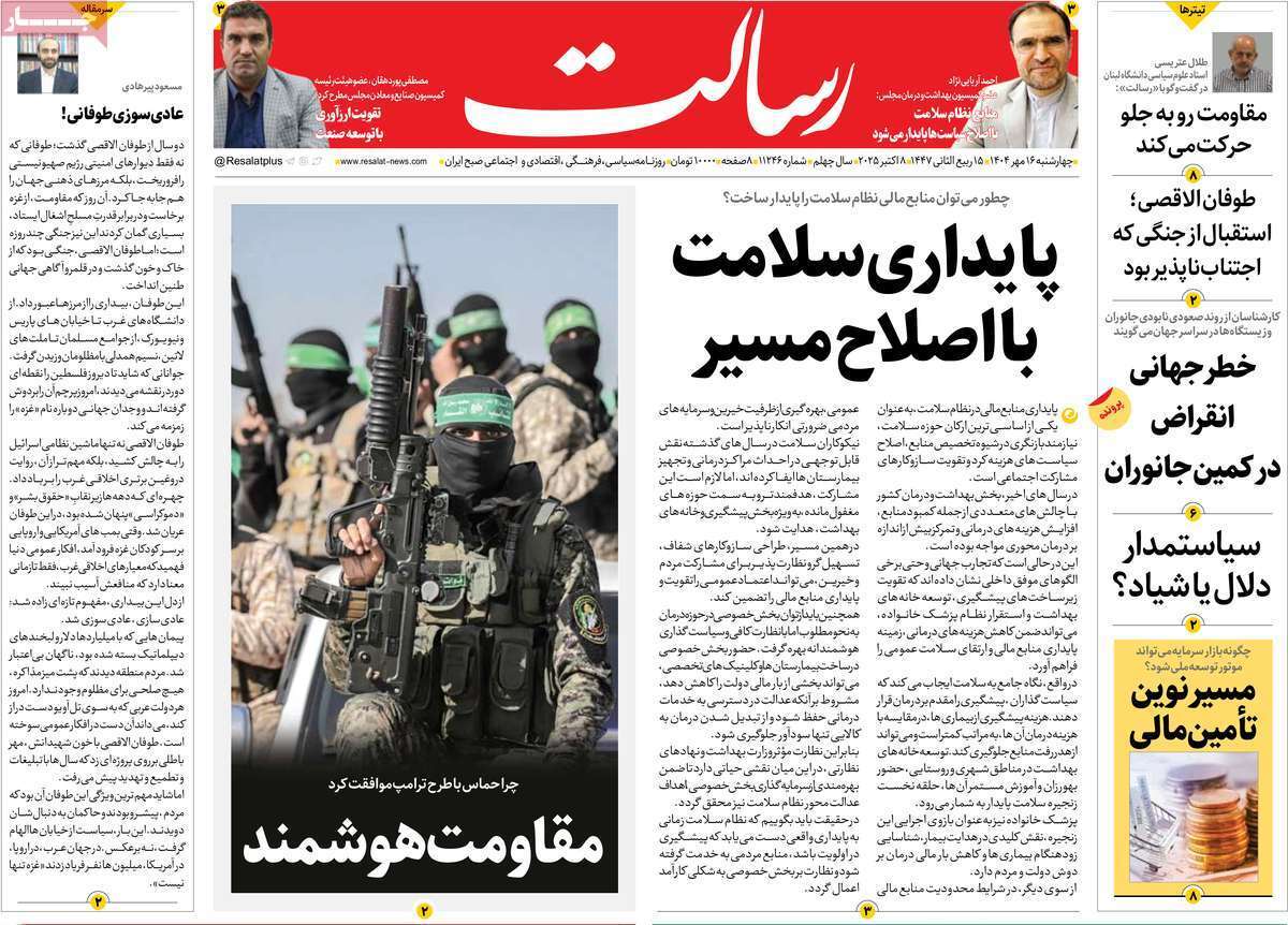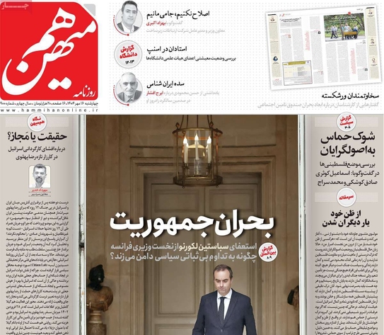 صفحات‌نخست‌روزنامه ها‌ی چهارشنبه‌۱۶ مهرماه