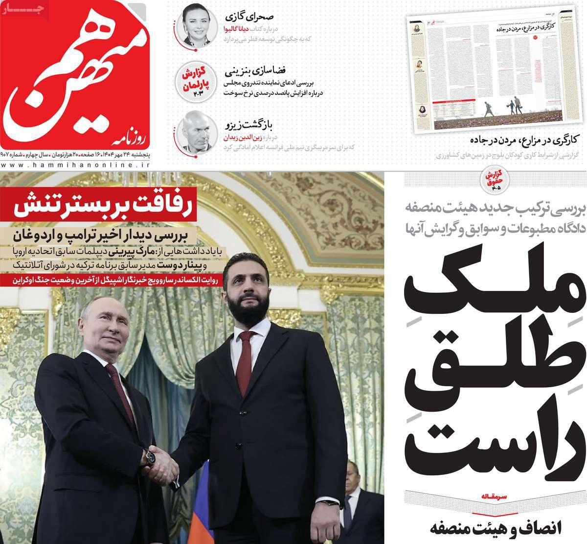 صفحات‌نخست‌روزنامه ها‌ی پنجشنبه‌۲۴ هرماه