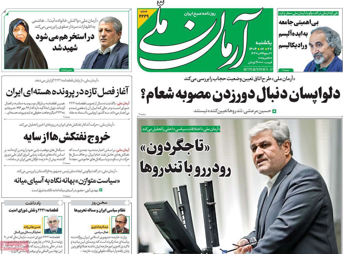 صفحات‌نخست‌روزنامه ها‌ی یکشنبه‌۲۷ هرماه