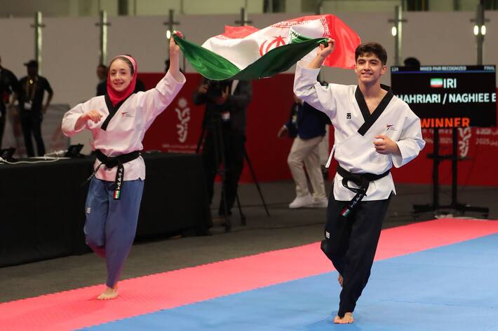 به گزارش جام جم آنلاین، رقابتهای تکواندوی سومین دوره بازیهای آسیایی جوانان در بحرین از ساعت ۱۱:۱۵ امروز(پنجشنبه) به وقت محلی در مرکز نمایشگاه جهانی بحرین پیگیری شد که تیم میکس پومسه کشورمان به مقام قهرمانی رسید.