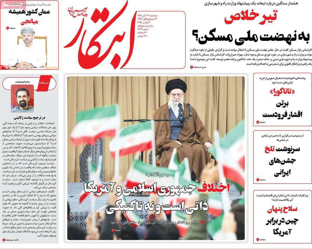 صفحات نخست‌ روزنامه‌ها‌ی سه‌شنبه‌ ۱۳‌آبانماه