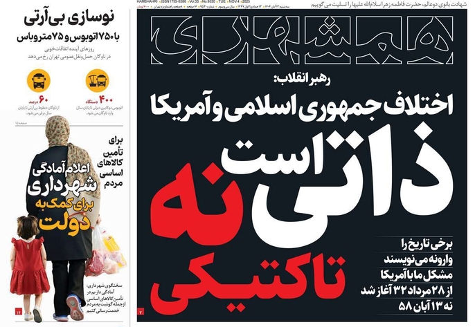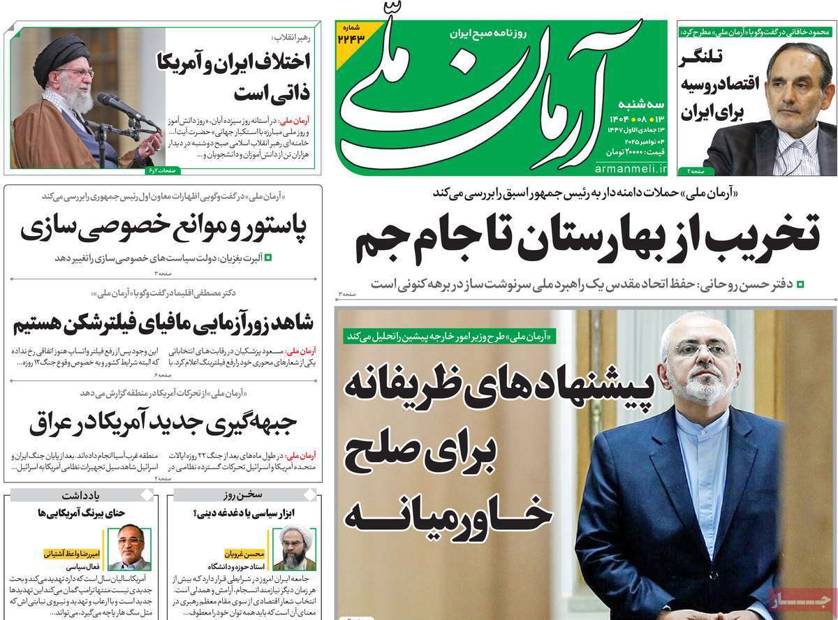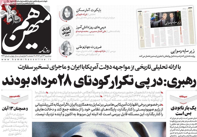 صفحات‌نخست‌روزنامه ها‌ی سه‌شنبه‌۱۳‌آبانماه