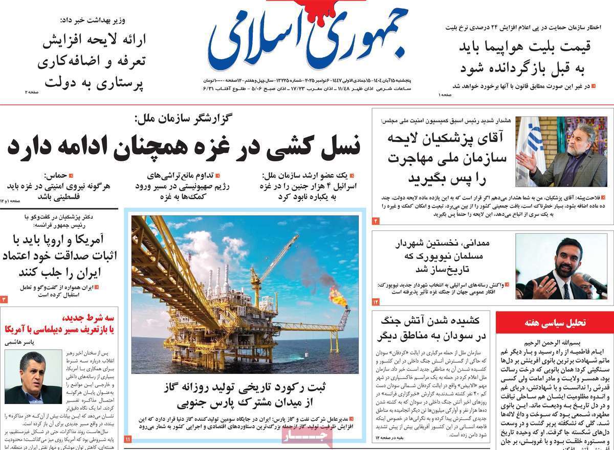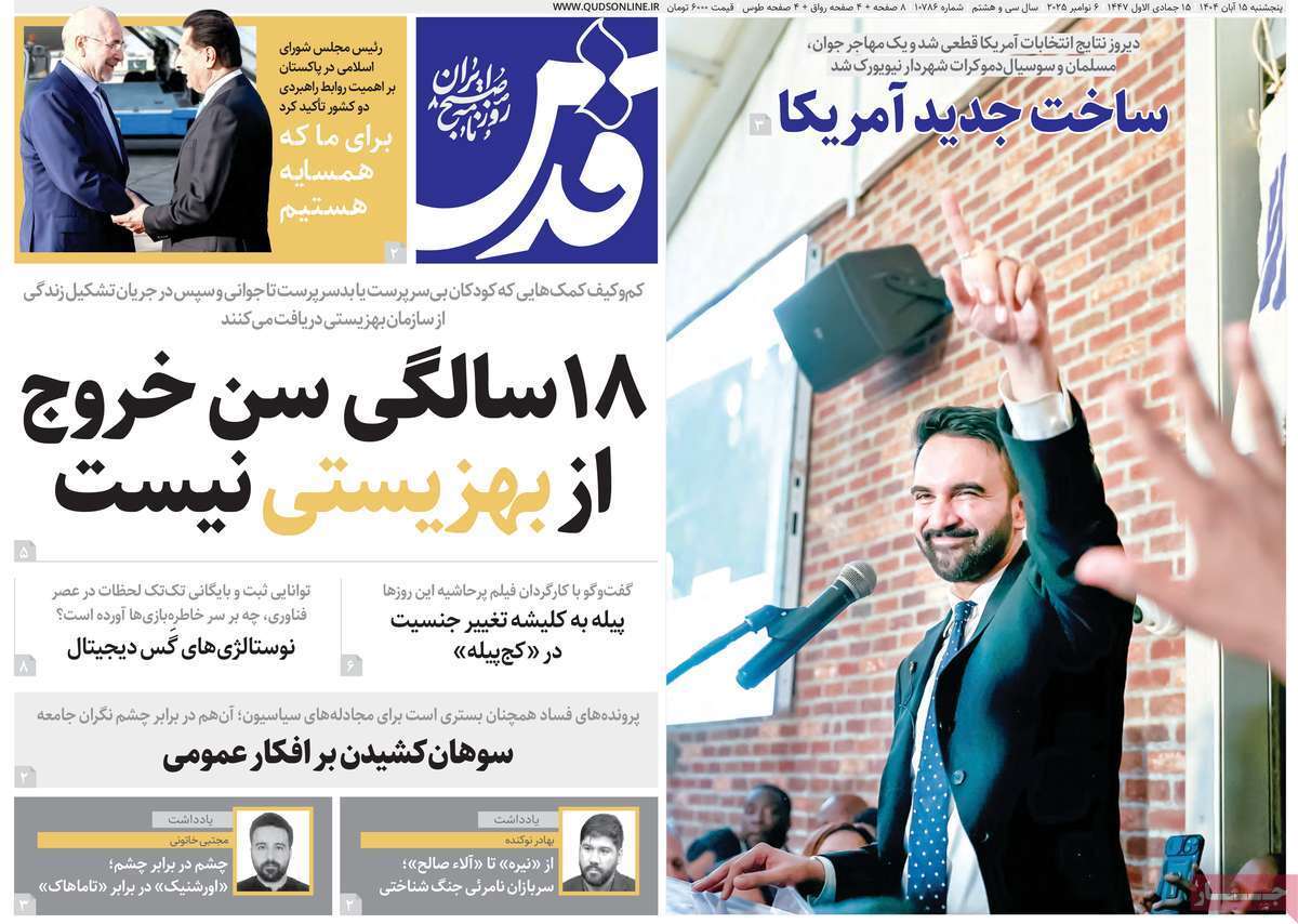 صفحات نخست روزنامه‌ها‌ی چهارشنبه ۱۵آبانماه