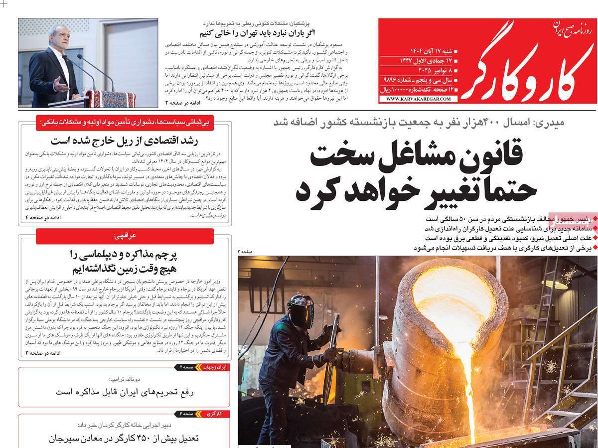 صفحات نخست روزنامه‌ها‌ی چهارشنبه ۱۷آبانماه