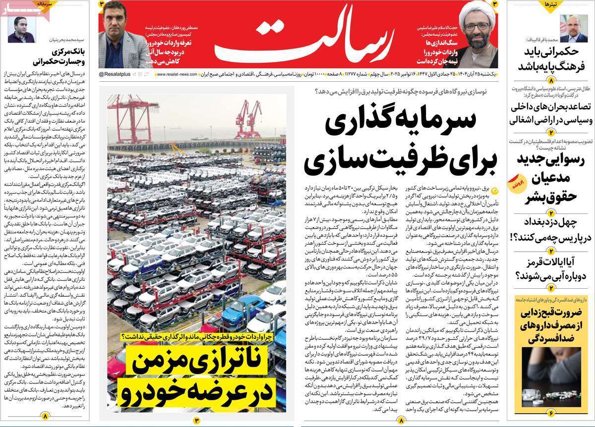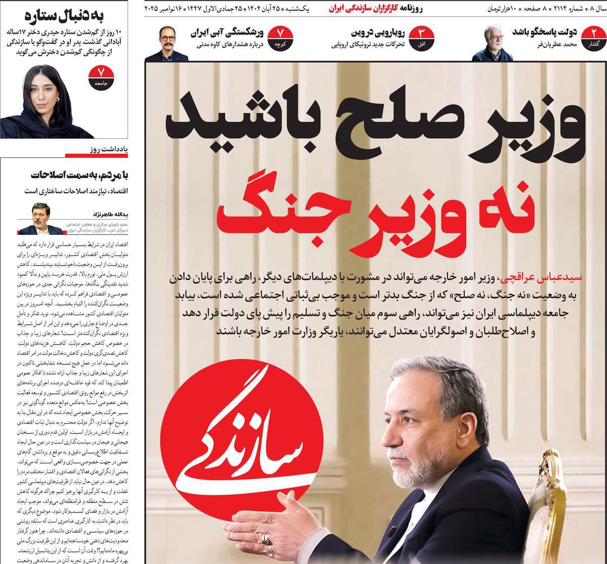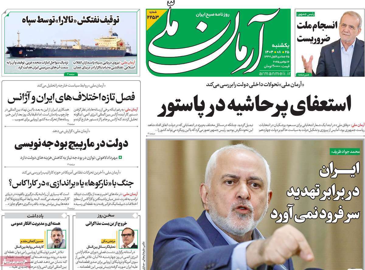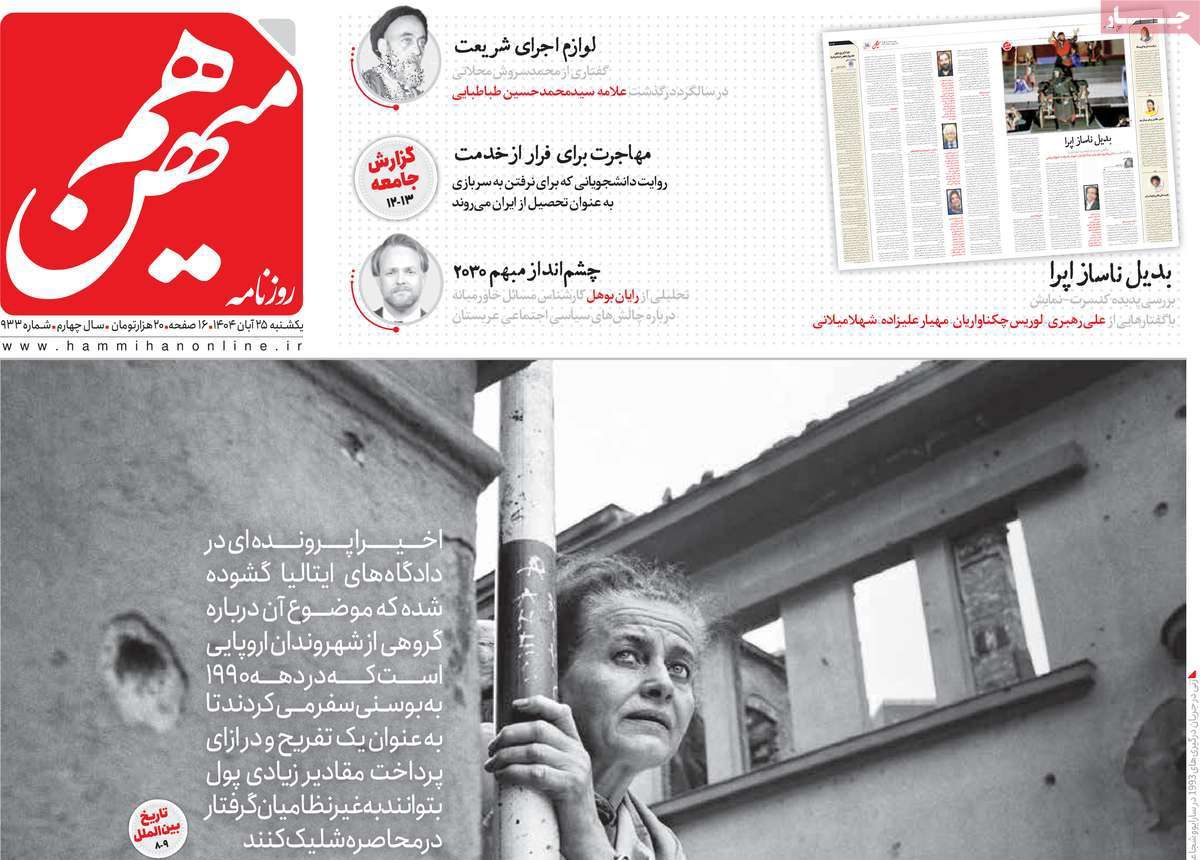 صفحات نخست روزنامه ها‌ی یکشنبه۲۵آبانماه