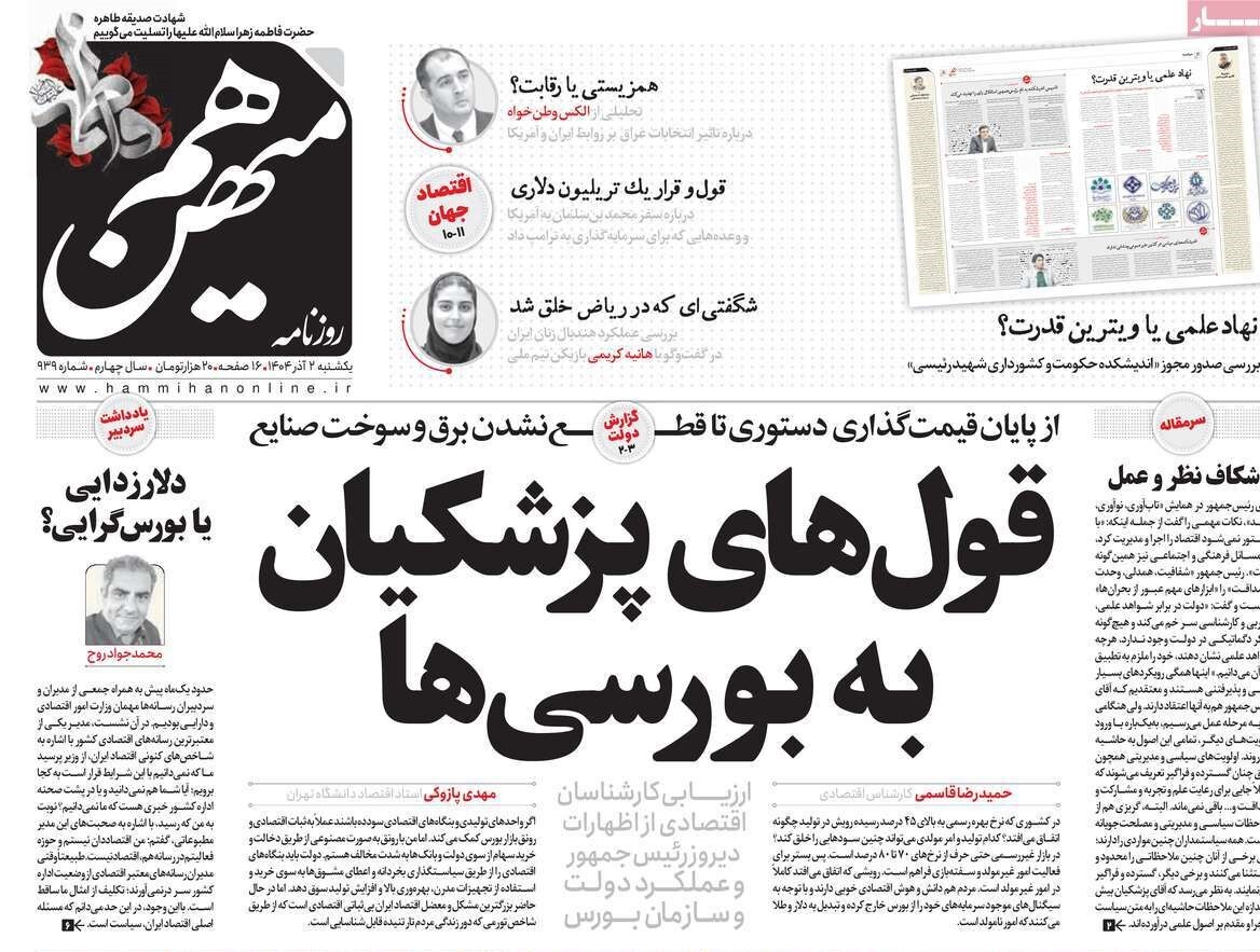 صفحات نخست روزنامه‌ها‌ی یکشنبه ۲آذرماه