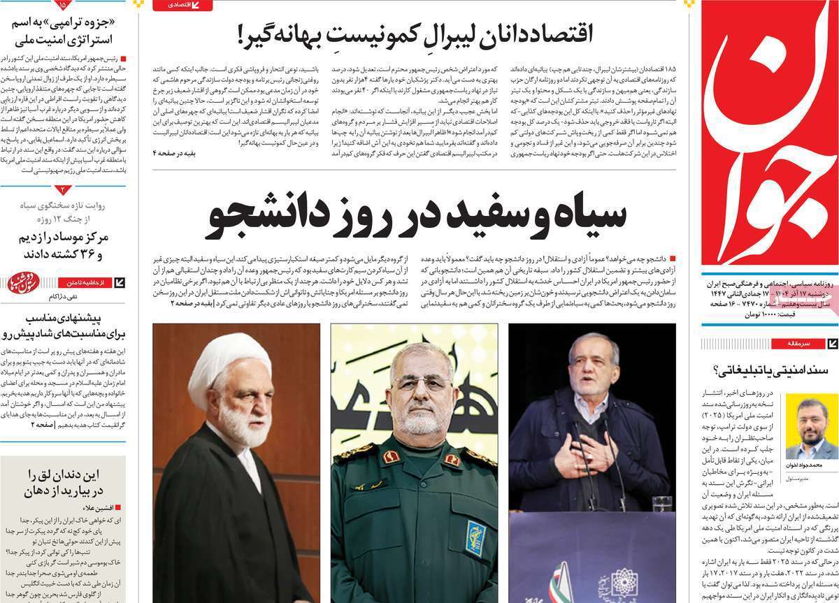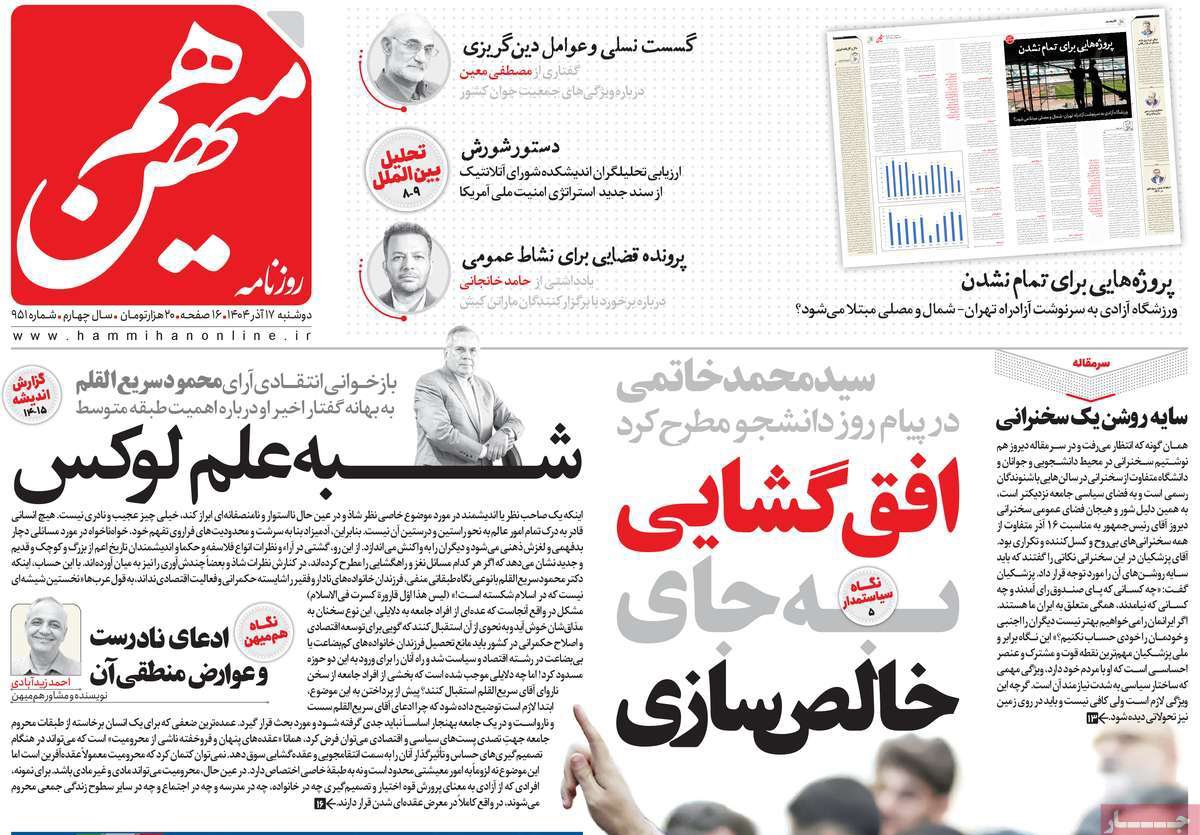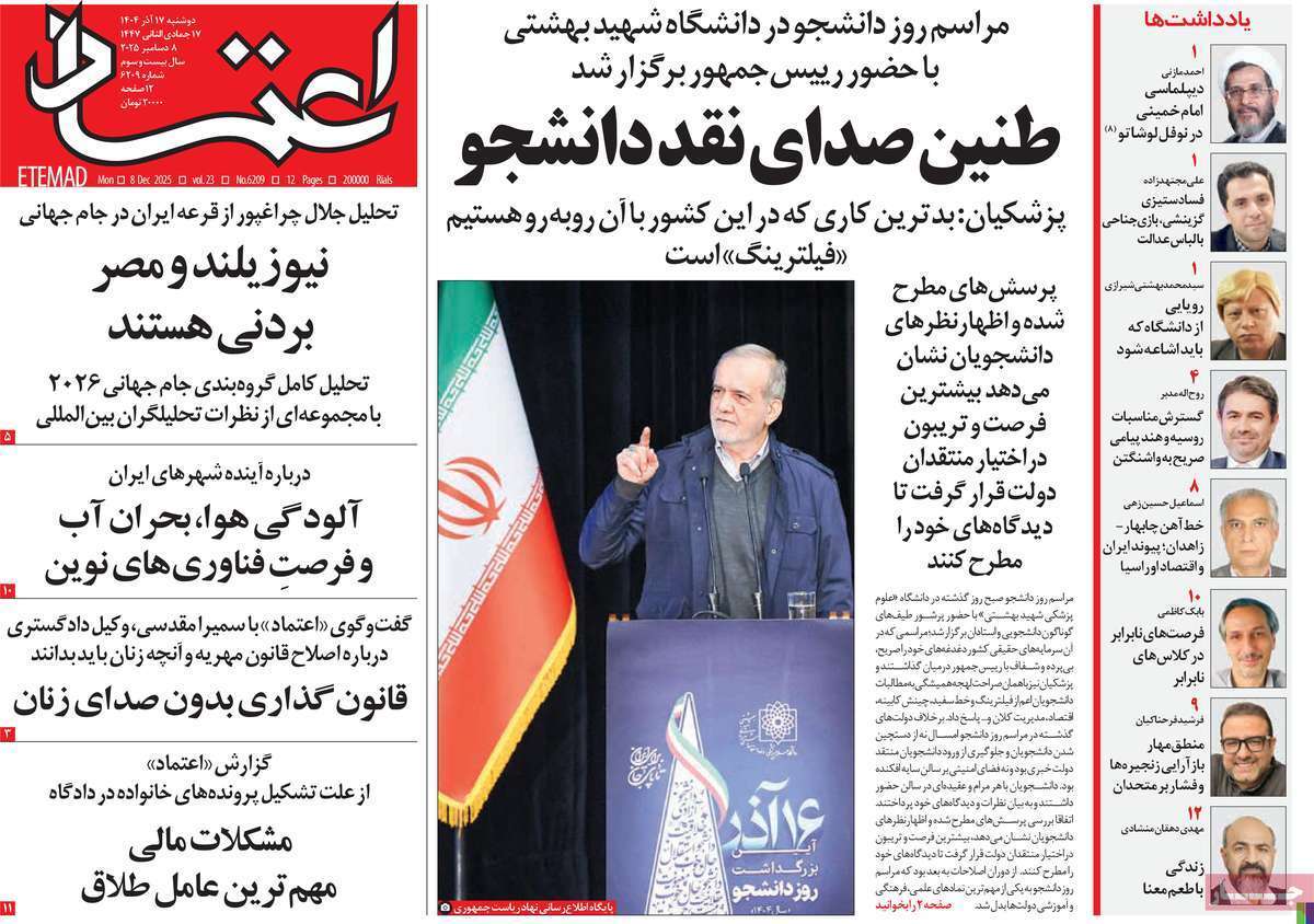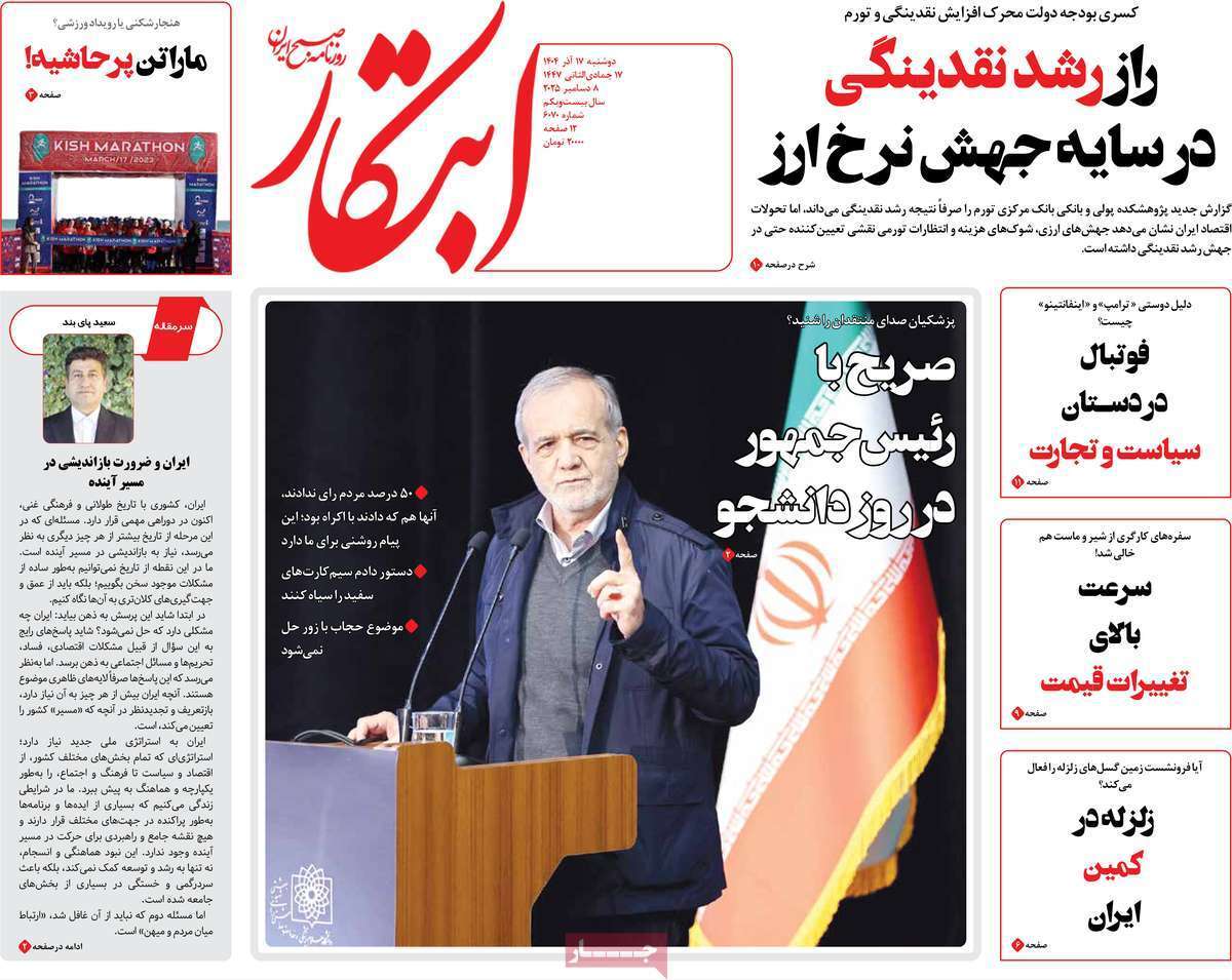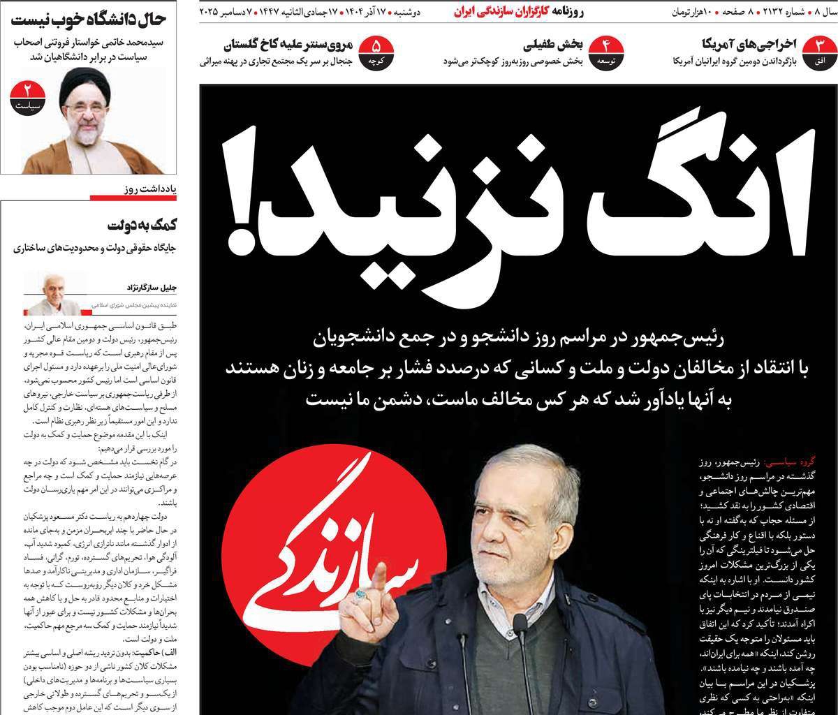 صفحات نخست روزنامه ها‌ی دوشنبه‌۱۷ آذرماه