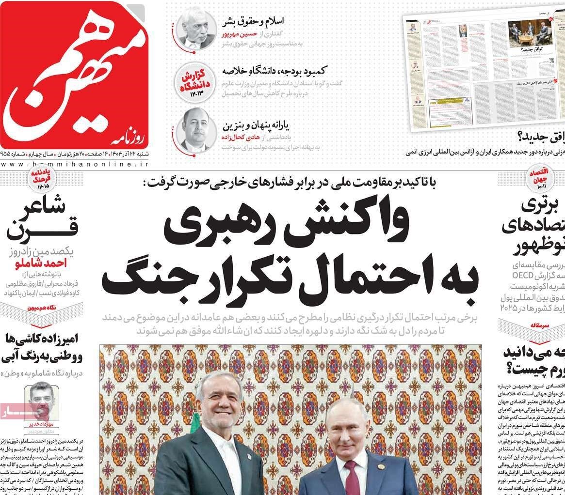 صفحات نخست روزنامه‌ها‌ی شنبه ۲۲ آذرماه
