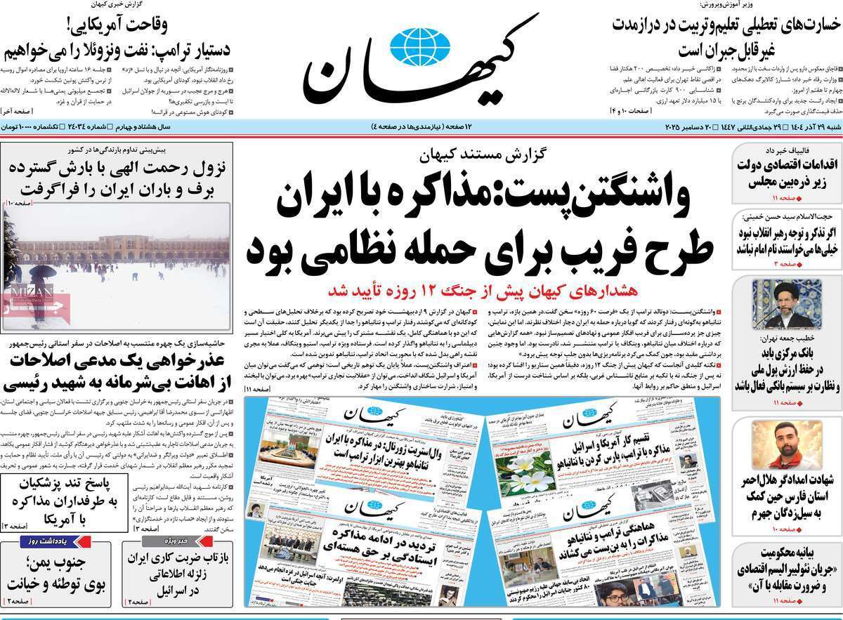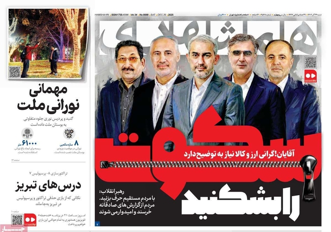 صفحات نخست روزنامه ها‌ی شنبه ۲۹ آذرماه