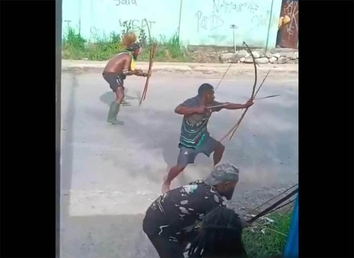 تصاویر منتشرشده اعضای دو قبیله رقیب در پاپوا گینه‌نو با تیر و کمان و سلاح‌های سنتی نشان می‌دهد.