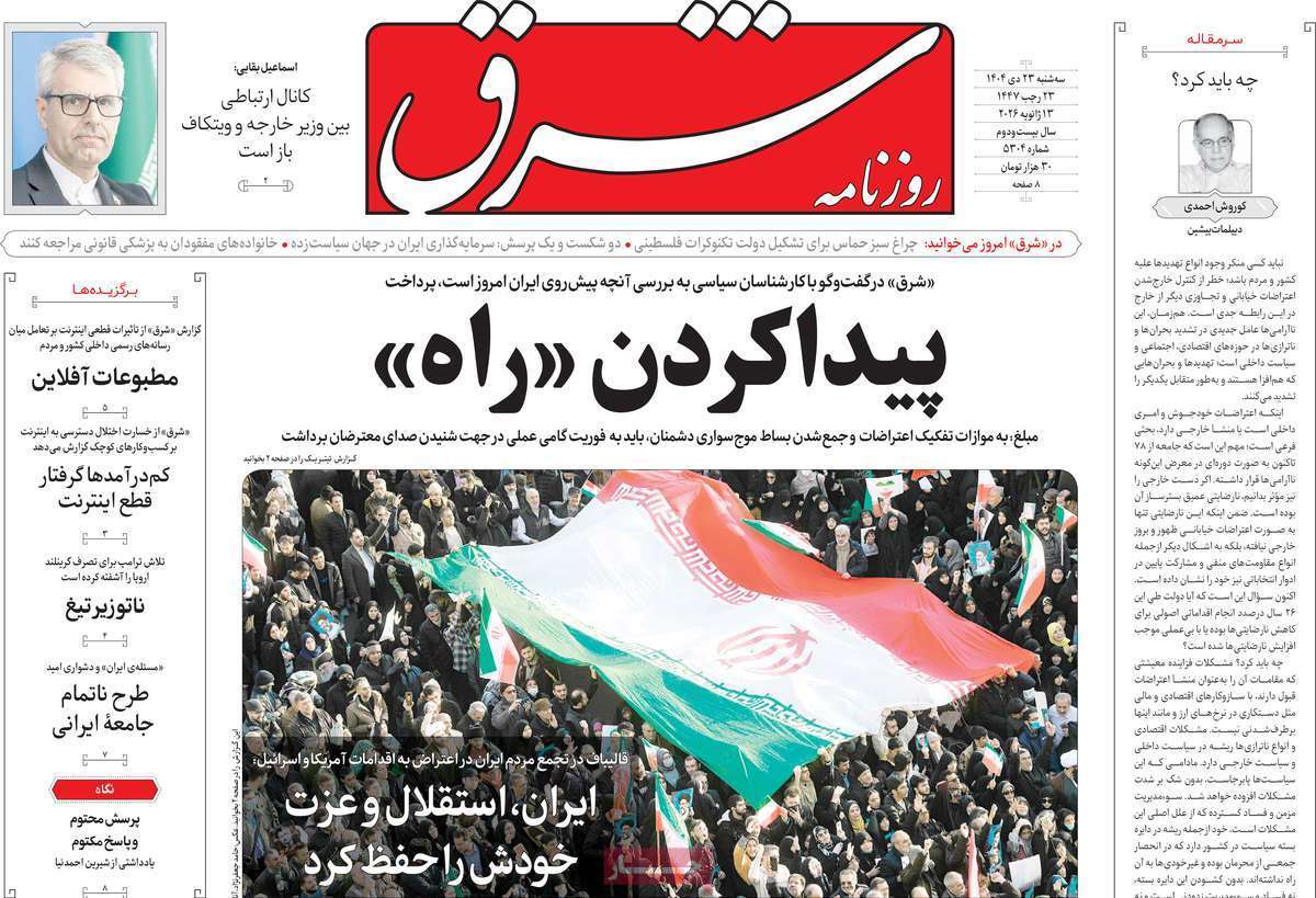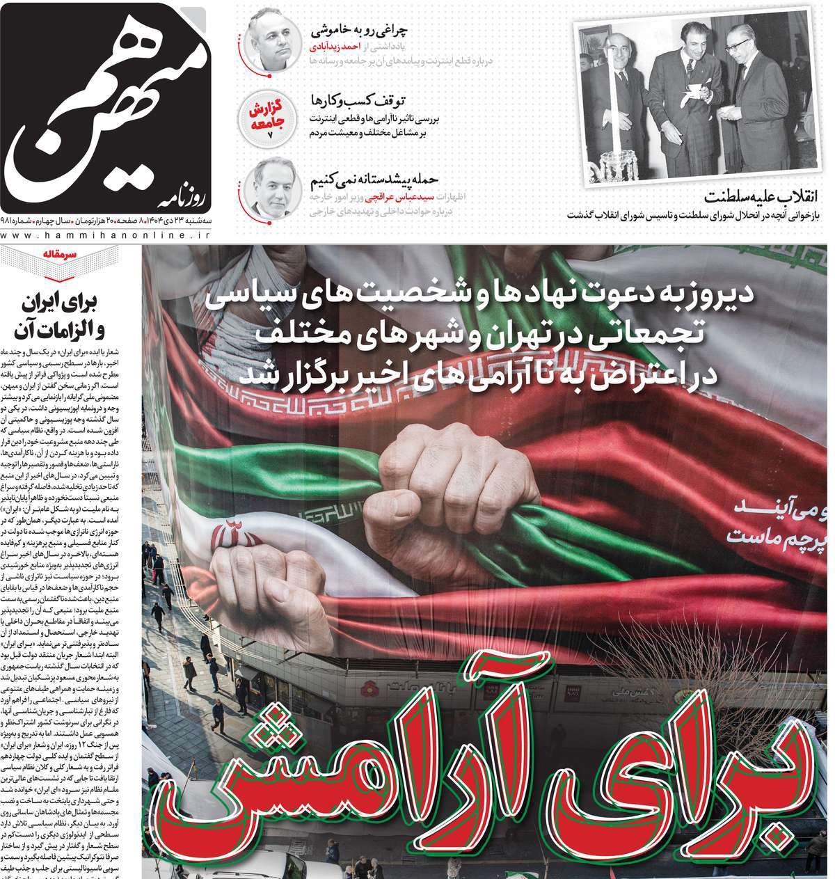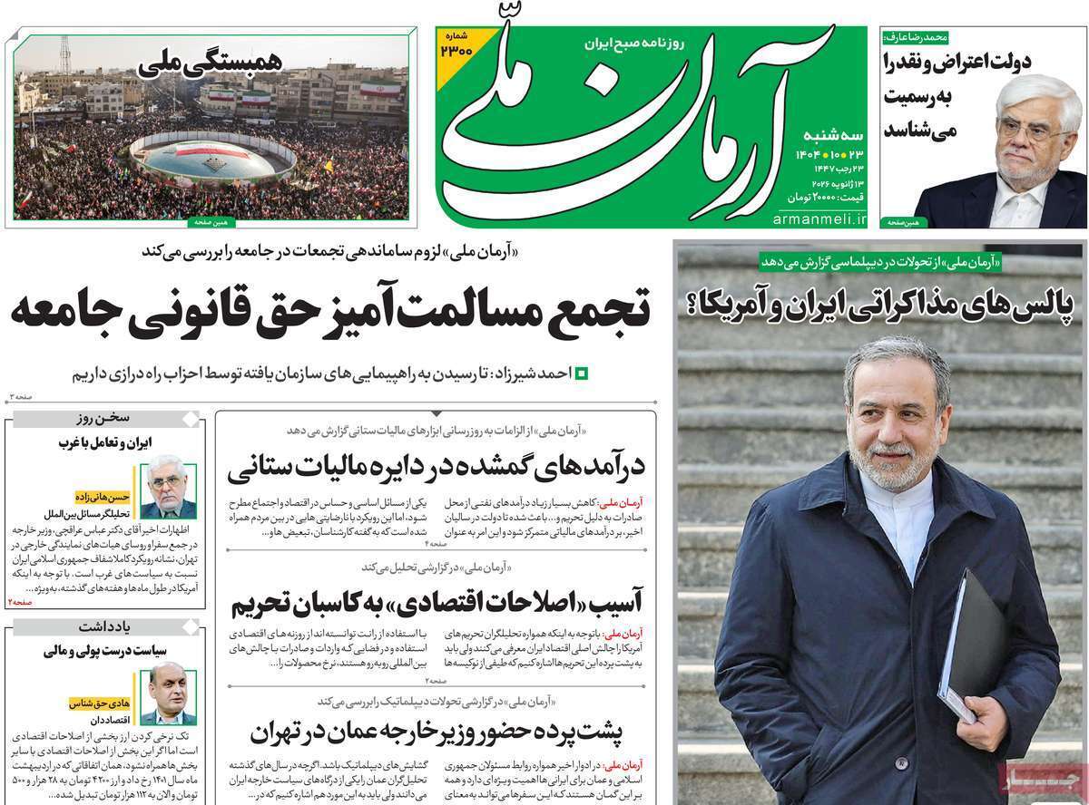 صفحات نخست روزنامه ها‌ی سه‌شنبه ۲۳ دی‌ماه