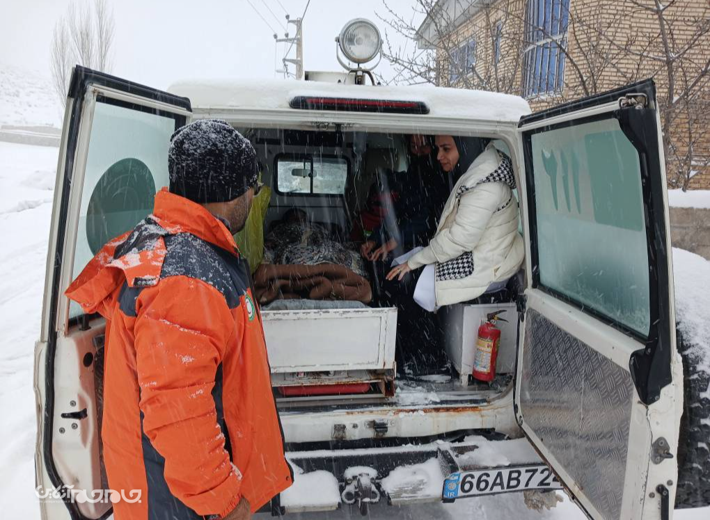 نجات مادر باردار از میان برف در آزادشهر
