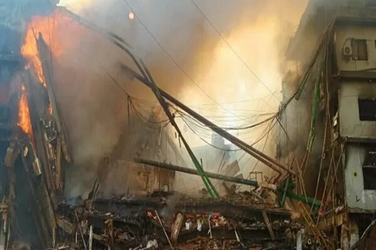 آتش سوزی عصر شنبه در یک مرکز خرید سه طبقه با ۱۲۰۰ مغازه رخ داد، اما علت آتش سوزی هنوز مشخص نیست.