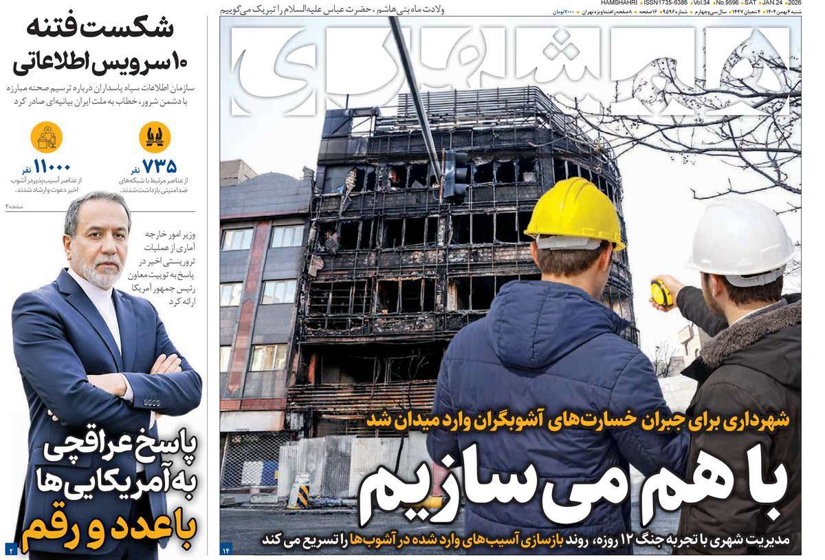 صفحات‌نخست‌روزنامه ها‌ی شنبه‌۴ بهمن‌ماه
