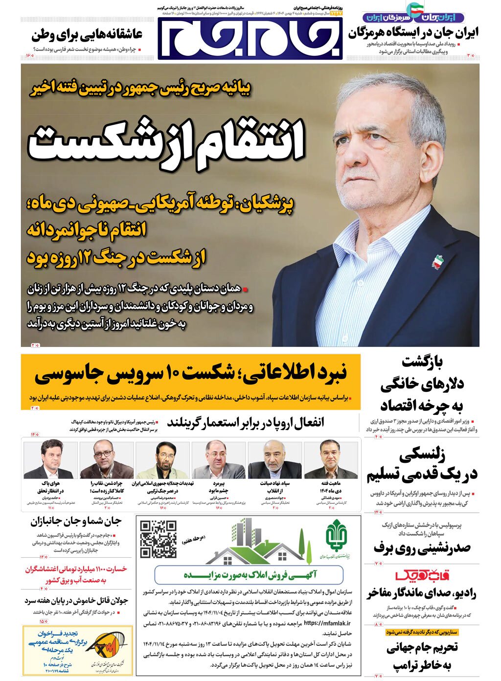 صفحات‌نخست‌روزنامه ها‌ی پنجشنبه‌۴ بهمن‌ماه
