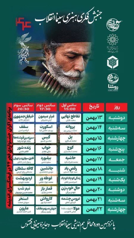 این محفل فرهنگی ـ سینمایی در فرهنگسرای اندیشه واقع در محدوده پل سیدخندان برگزار شده و علاقه‌مندان به سینمای انقلاب و آثار جشنواره فجر می‌توانند در آن حضور یابند.