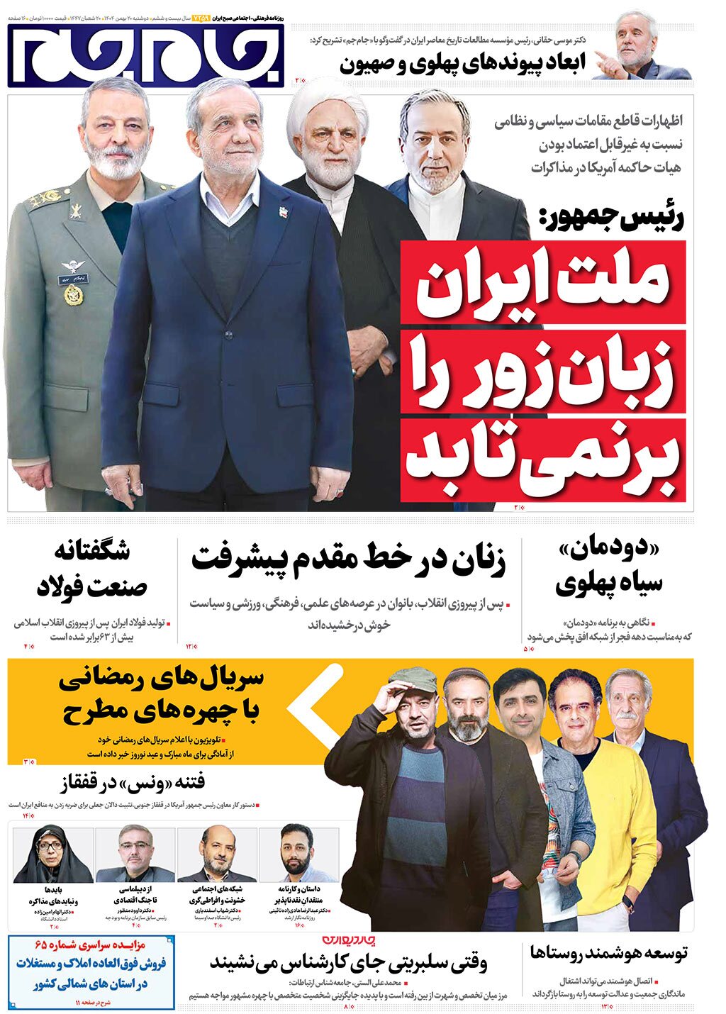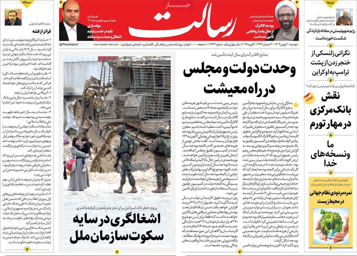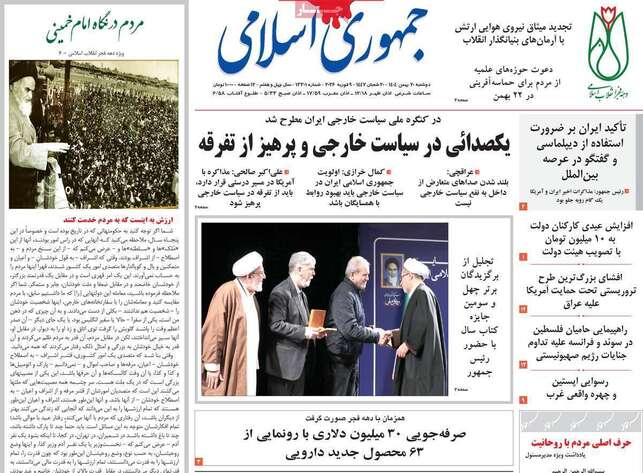 صفحات نخست روزنامه ها‌ی دوشنبه ۲۰ بهمن‌ماه