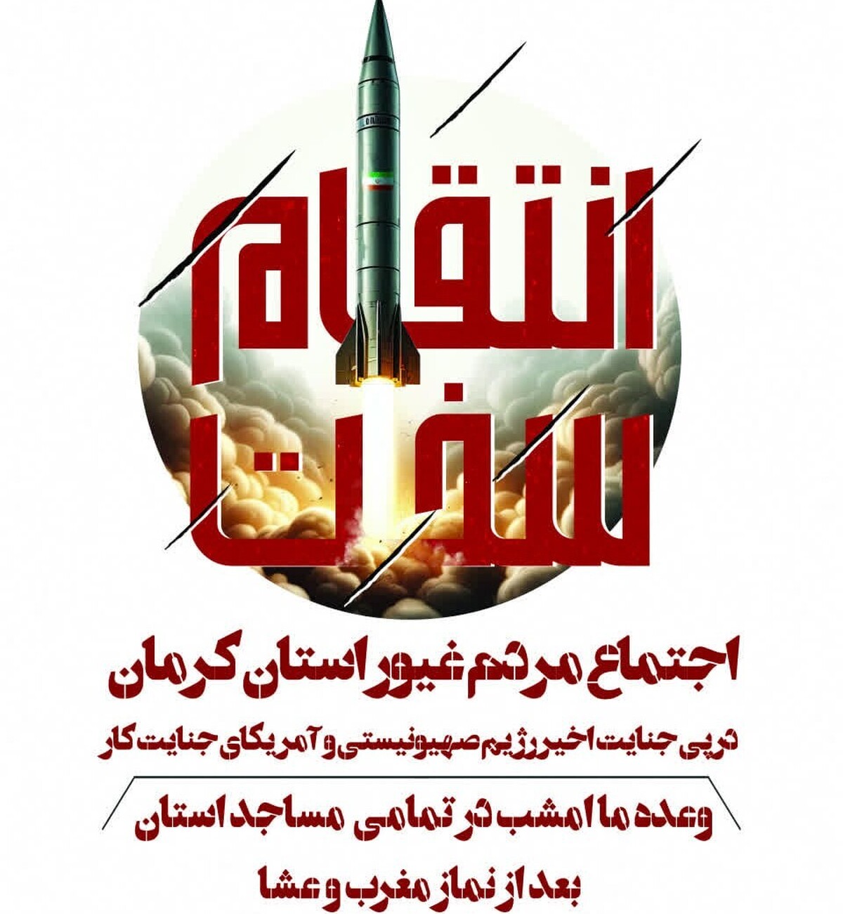 کرمان- مردم استان کرمان امشب در محکومیت تجاوز رژیم صهیونیستی و آمریکای جنایتکار به خاک ایران اسلامی تجمع می کنند.