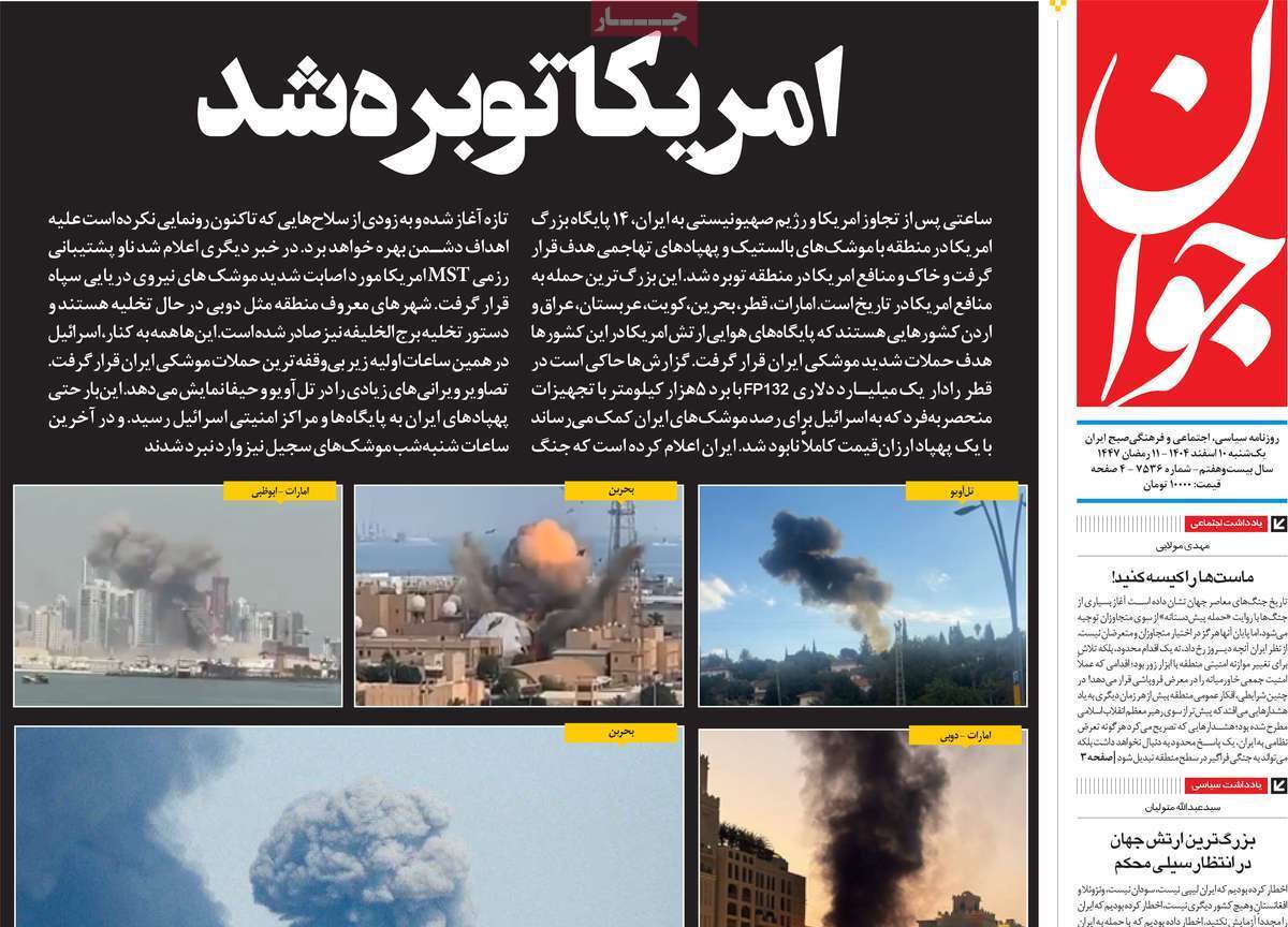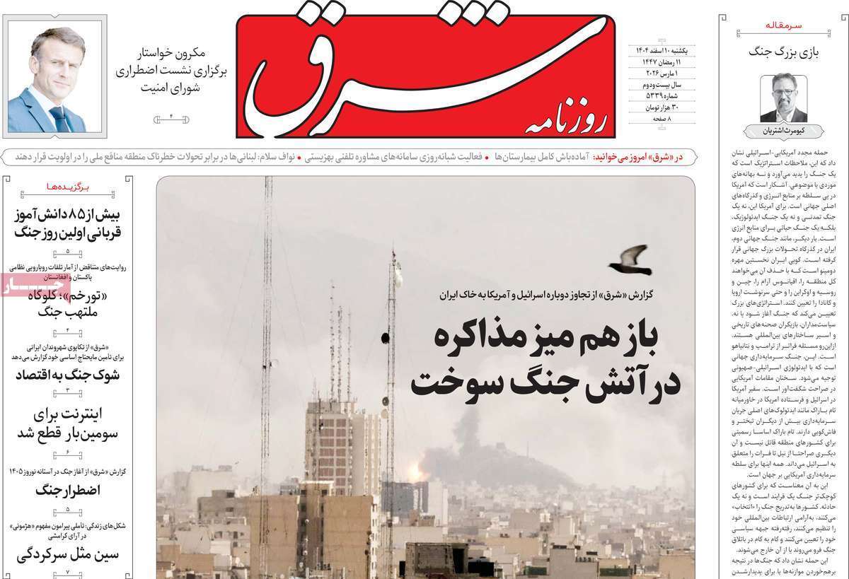 صفحات نخست‌روزنامه ها‌ی یکشنبه‌۱۰ اسفندماه