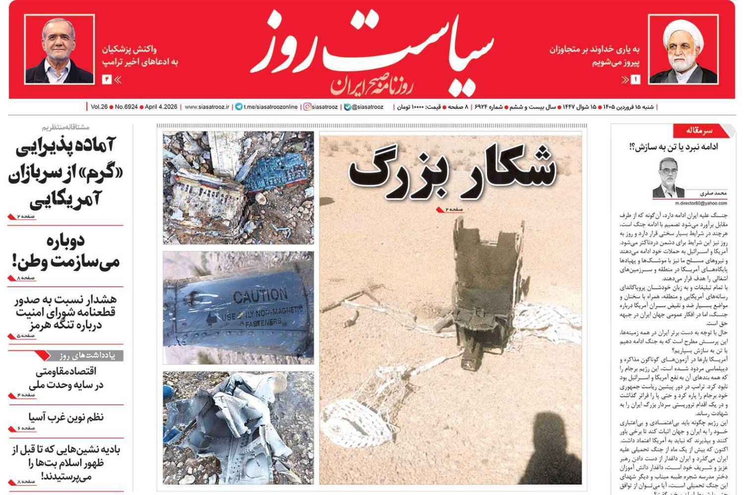 صفحات‌نخست‌روزنامه‌ها‌ی‌شنبه‌۱۵ فروردین‌ماه