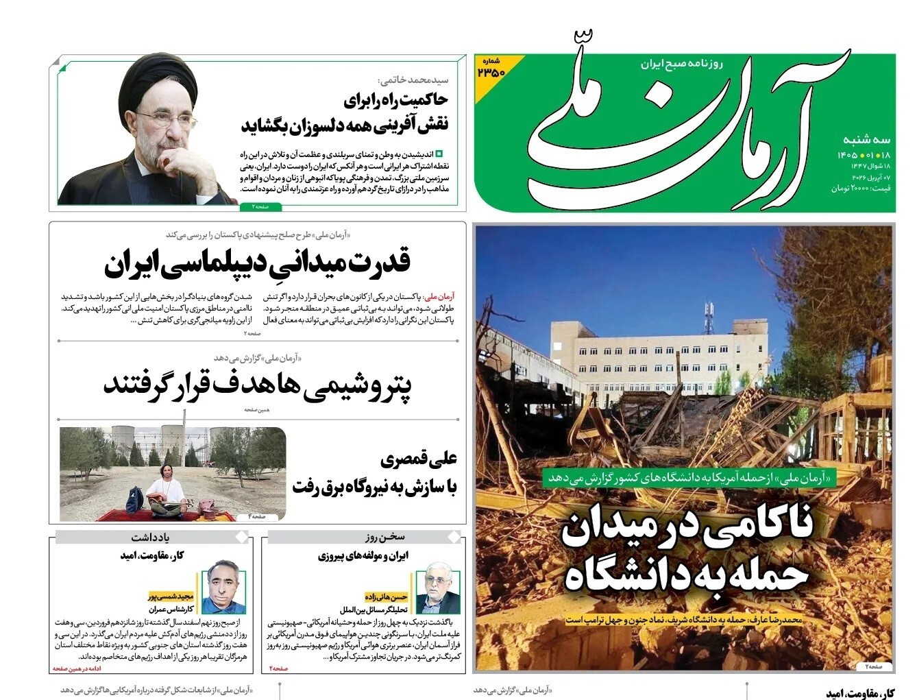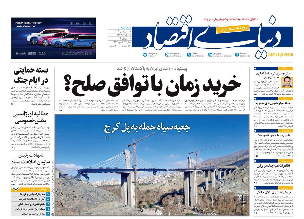 صفحات نخست‌ روزنامه‌ها‌ی‌ سه‌شنبه‌ ۱۸فروردین‌ماه