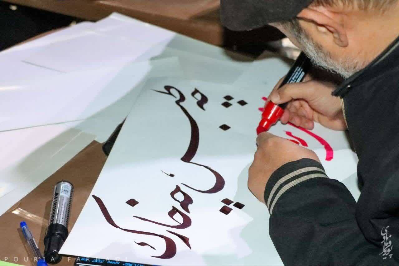 حضور خوشنویسان شهرکردی و ارائه خدمات از جمله پلاکارد نویسی، جلوهای از پیوند هنر، حماسه و ولایتمداری بود.
