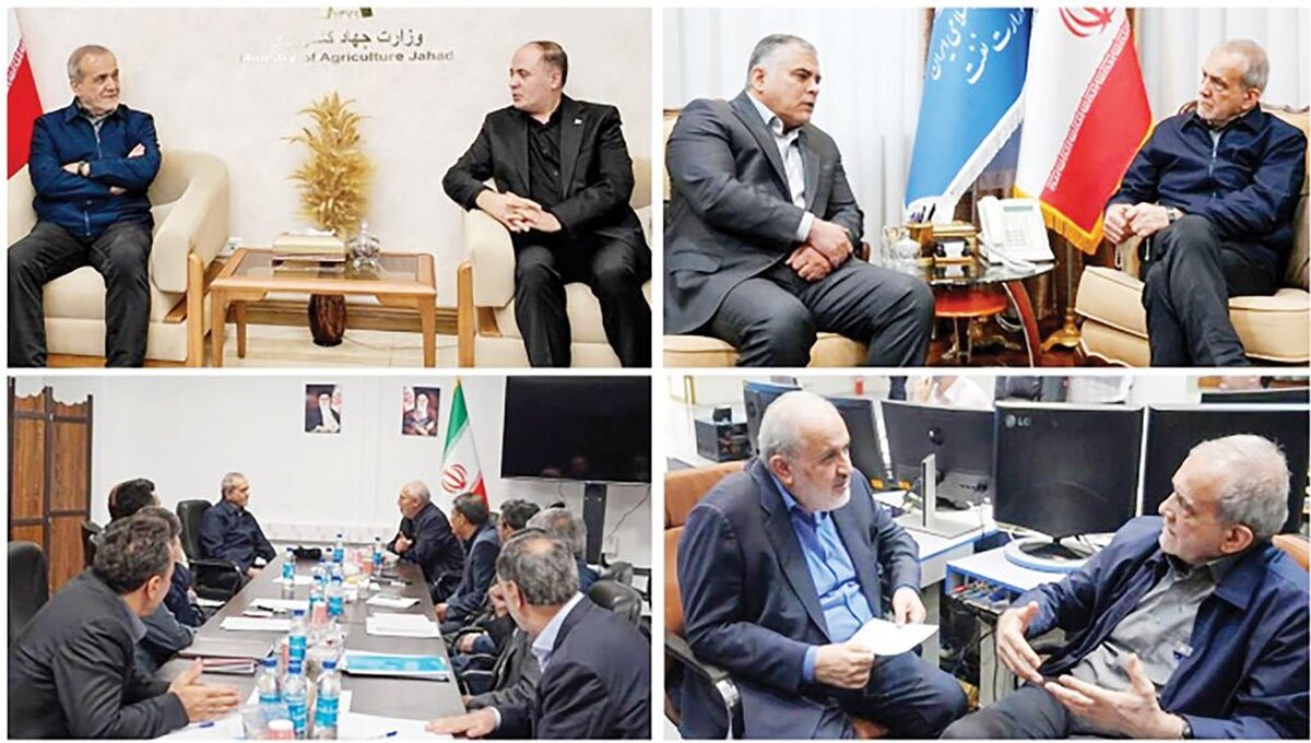 پزشکیان در حاشیه بازدید از وزارت جهادکشاورزی گفت: ما برای خدمت به مردم، با قدرت و با تمام وجود ایستادهایم و تلاش خواهیم کرد که کمبودها، کسریها و خرابیهایی را که در جنگ ایجاد شده با این همدلی و وفاقی که وجود دارد و با یک زبان و نگاه مشترک، با رهبری آیتالله سیدمجتبی حسینیخامنهای، رفع کنیم و بر همه این مشکلات غلبه کنیم. او بر ضرورت حضور و نقشآفرینی اصناف و اتحادیههای کشاورزی در تامین امنیت غذایی در کنار دولت تاکید کرد و افزود: در ایام جنگ اصناف و بخش خصوصی احساس مسئولیت کردند و به میدان آمدند و در کنار دولت و مردم ایستادند تا به معیشت مردم کمترین خدشهای وارد نشود. دکتر پزشکیان بر استفاده از ظرفیت تجاری منطقه اوراسیا تاکید کرد و گفت: همکاریهای تجاری دوجانبه، چندجانبه و منطقهای در اوراسیا را باید افزایش دهیم، حذف نظام تعرفه تجاری در این منطقه، یک مزیت نسبی بسیار موثر در کاهش قیمت کالاهاست. وی بر ضرورت توسعه همکاری و دیپلماسی کشاورزی با همسایگان تاکید کرد و گفت: با توجه به شرایطی بحرانی جنگ، فرآیندهای بستهبندی و توزیع کالاهای اساسی مثلا در توزیع گوشت مرغ و تخممرغ، با نظارت و تایید دامپزشکی مورد بازبینی قرار بگیرد تا روند عرضه تسهیل و تسریع شود.