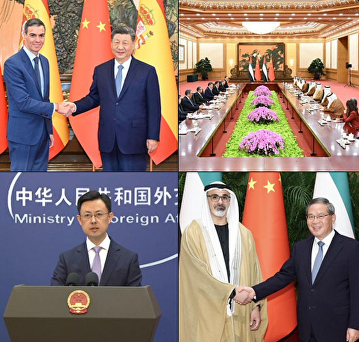 رئیس جمهور چین در دیدار با خالد بن محمد آل نهیان، ولیعهد ابوظبی درپکن هم، ۴ پیشنهاد برای حفظ صلح ارائه کرد. پیشنهاد شی جینپینگ شامل پایبندی به همزیستی مسالمت آمیز، احترام به حاکمیت کشورها، حفظ قوانین بین المللی و هماهنگی امنیت و توسعه است.