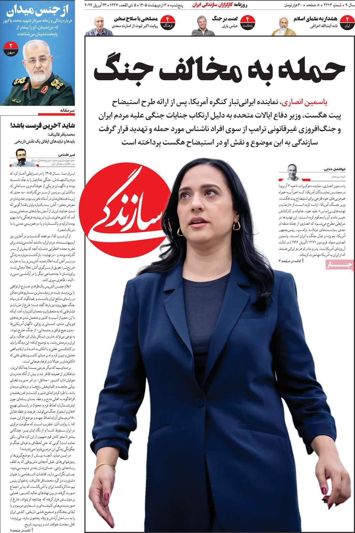 صفحات‌خست‌روزنامه‌ها‌ی پنجشنبه‌۳‌اردیبهشت‌ماه