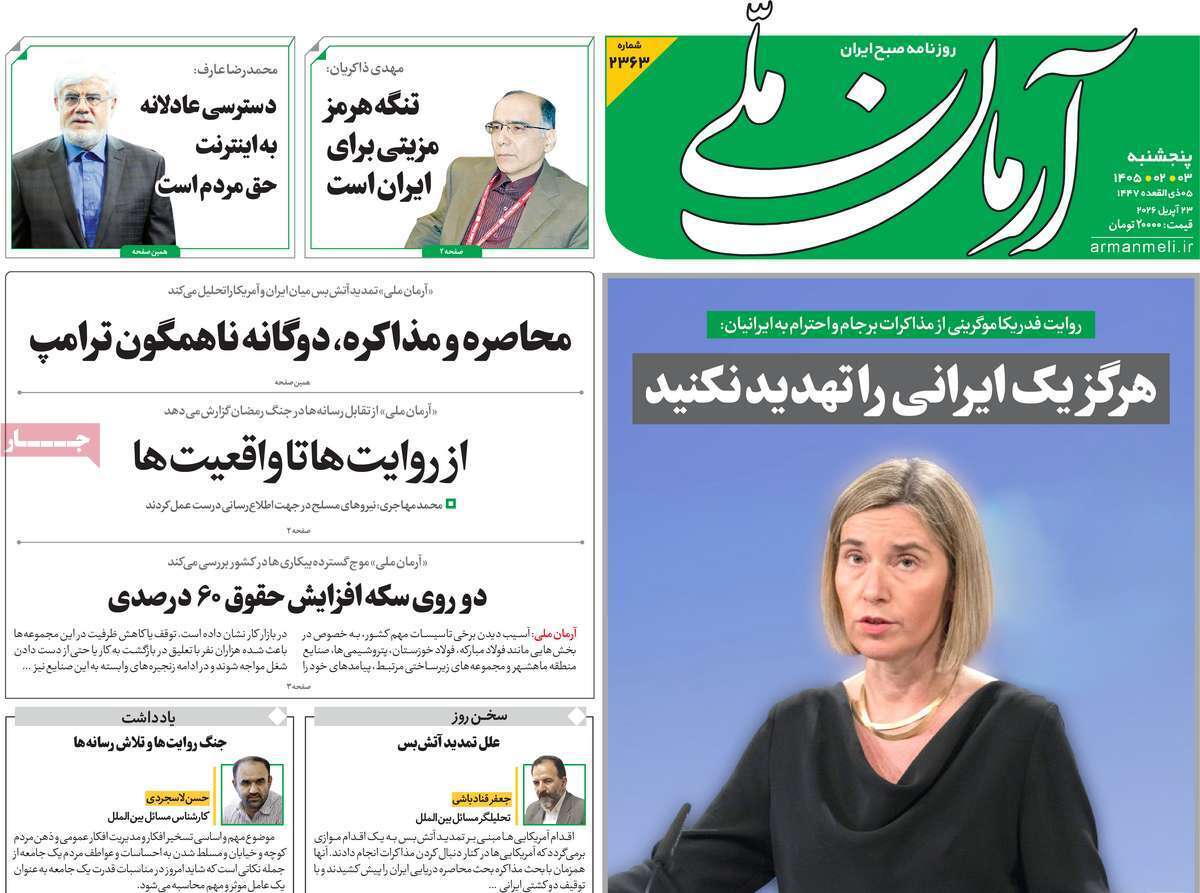 صفحات‌ نخست‌ روزنامه‌ها‌ی پنجشنبه‌ ۳‌ اردیبهشت‌ماه