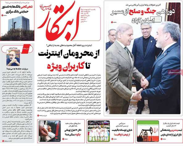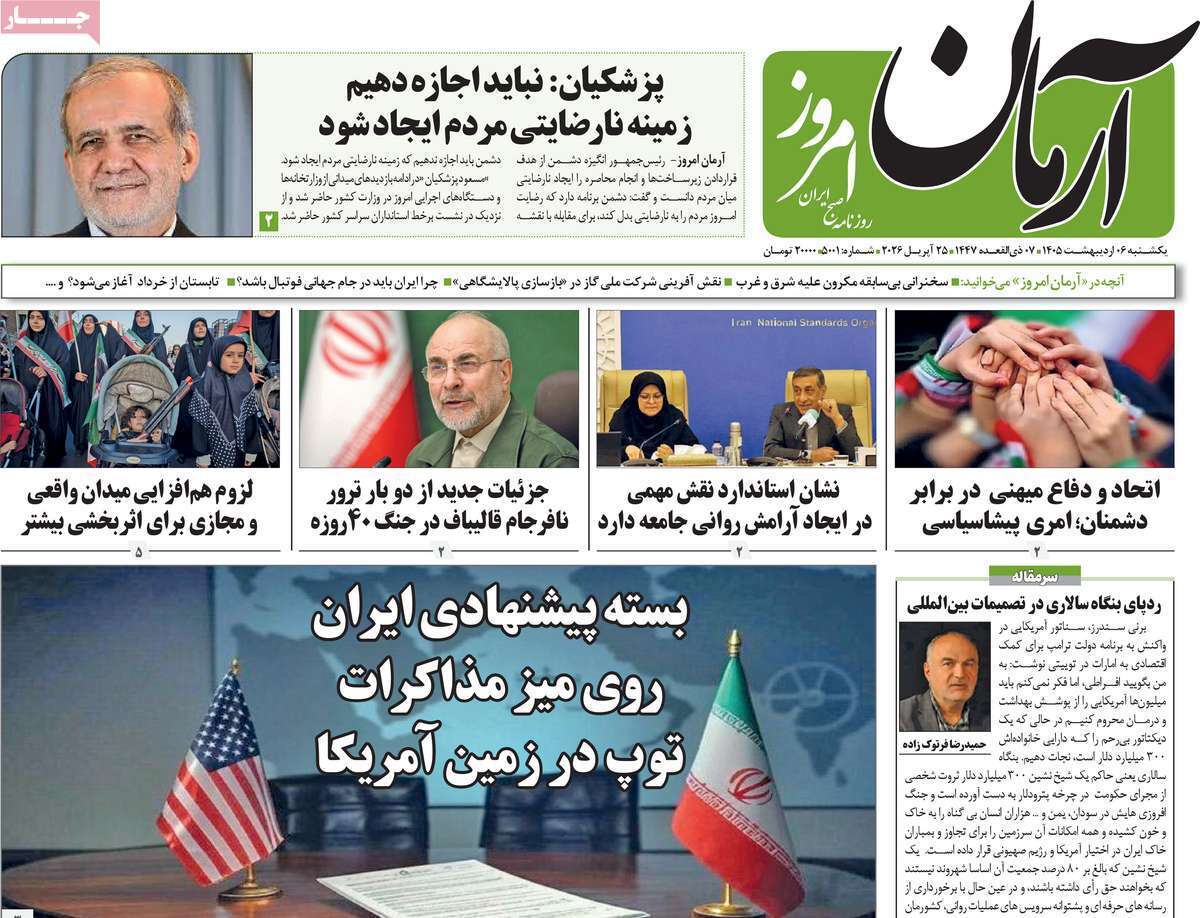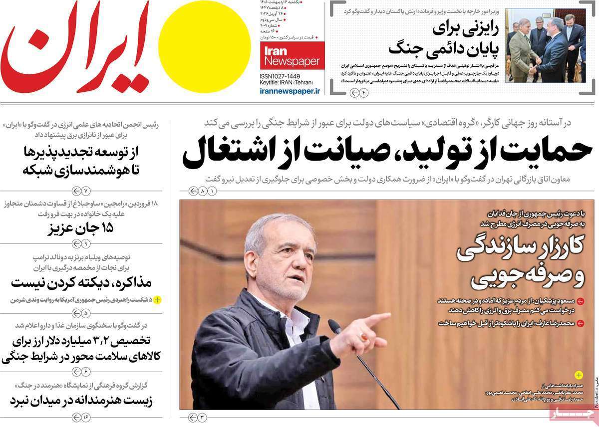 صفحات نخست روزنامه ها‌ی یکشنبه‌۶‌اردیبهشت‌ماه