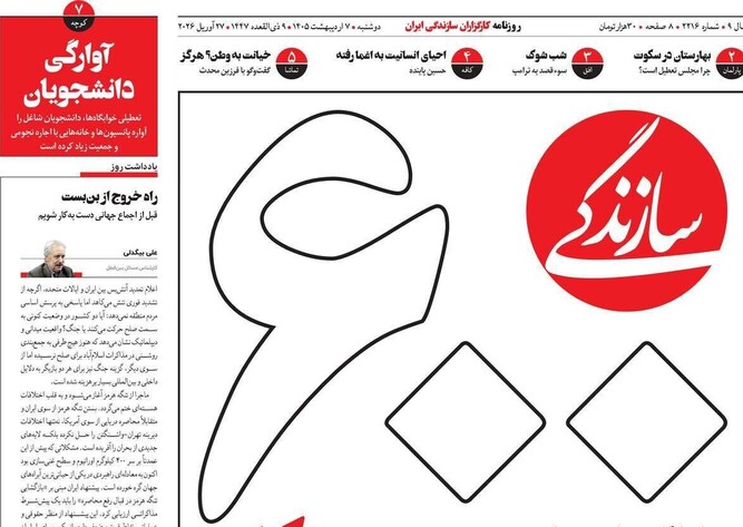 صفحات نخست روزنامه‌ها‌ی یکشنبه ۷ اردیبهشت‌ماه