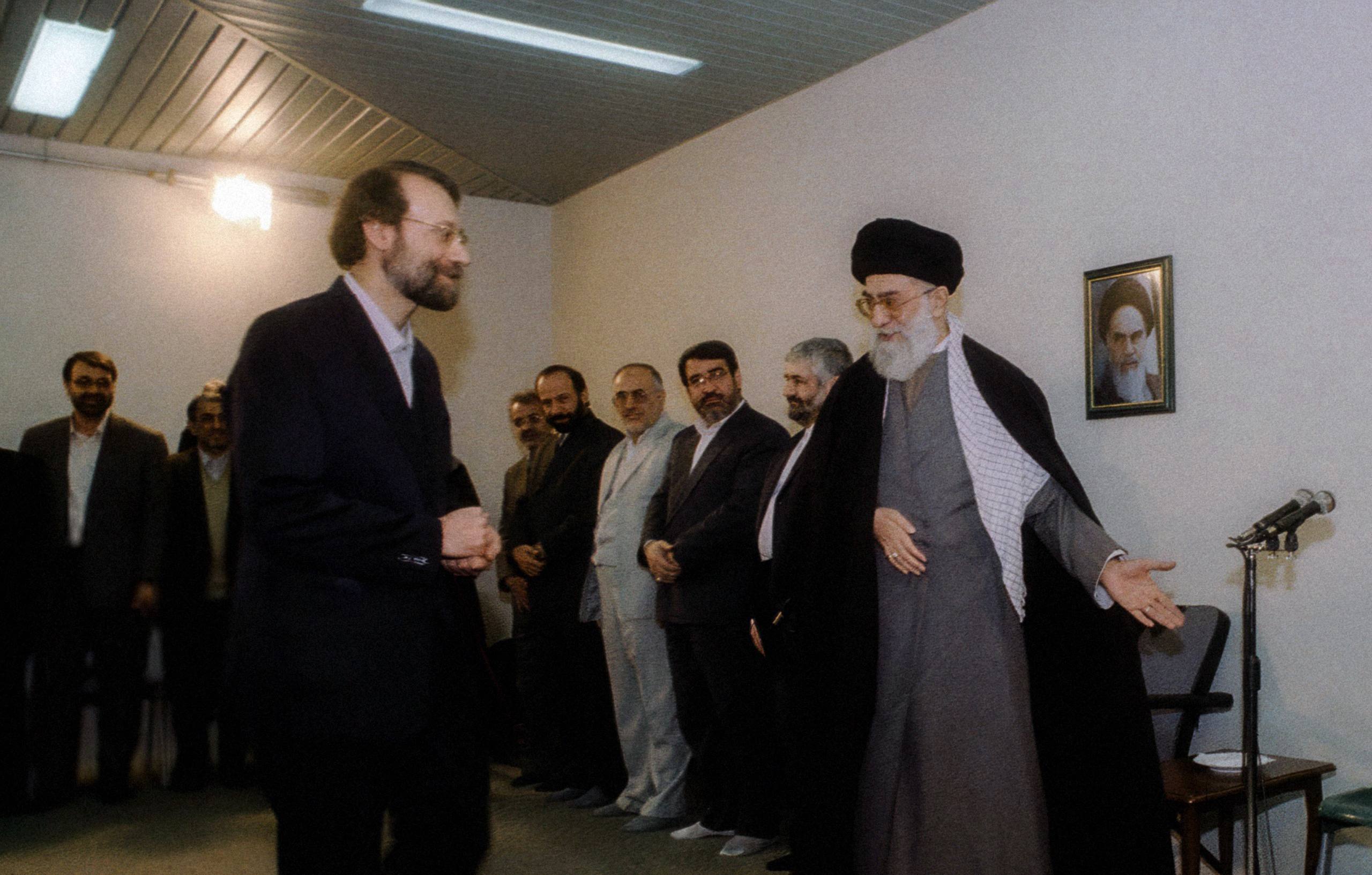 عکس | قاب‌های ماندگار از حضور رهبر شهید انقلاب اسلامی در صداوسیما با شهید علی لاریجانی