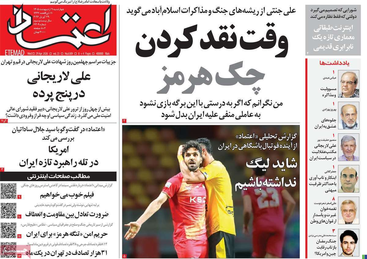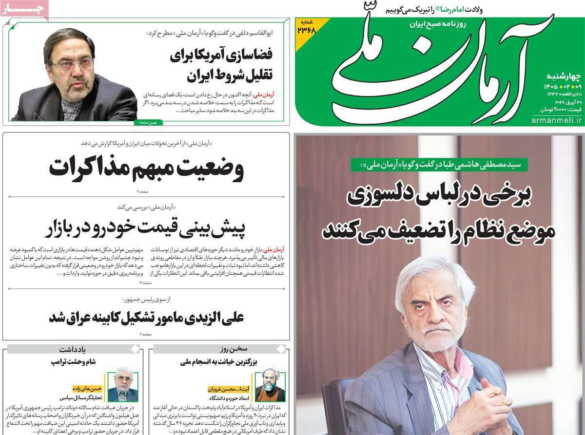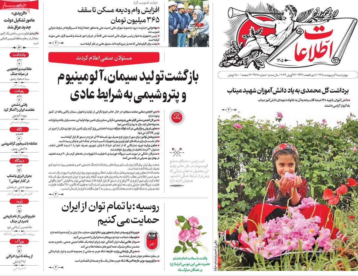 صفحات نخست‌روزنامه‌ها‌ی‌چهارشنبه‌۹‌اردیبهشت‌ماه