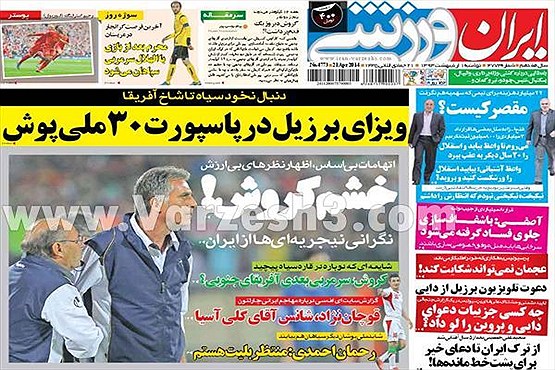 تیتر اکثر روزنامه های ورزشی به قرارداد استقلالی ها اختصاص یافته است ، هر چند این وسط ایران ورزشی تیتر اول خود را به صدور ویزای برزیل برای 30 ملی پوش اختصاص داده است.